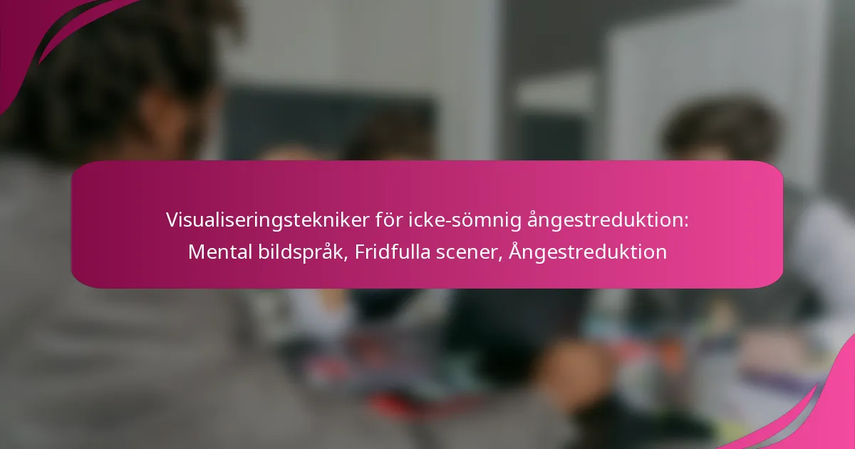 Visualiseringstekniker för icke-sömnig ångestreduktion använder mental bildspråk för att framkalla lugnande scener som hjälper till att lindra ångest. Genom att engagera sinnet i positiva och fredliga...